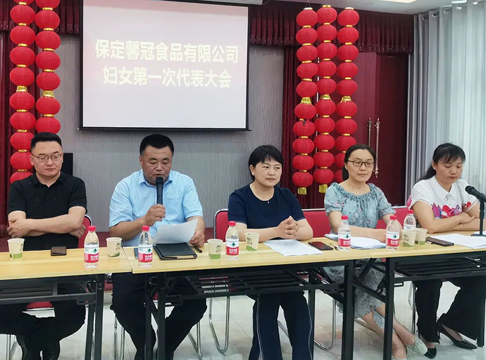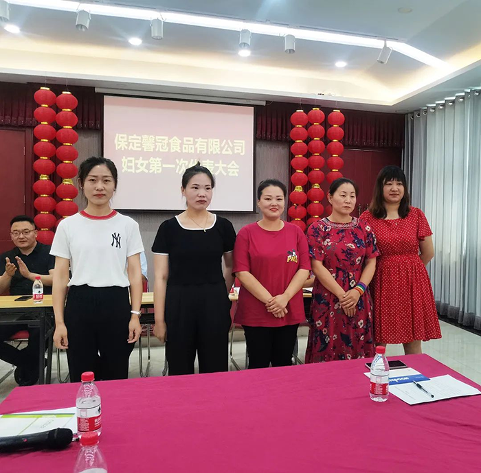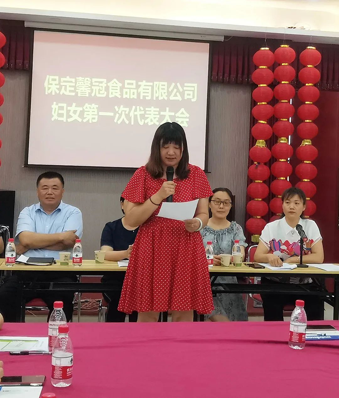 萬物蔥綠,麥浪金黃,在這個盛夏浪漫時節(jié),2021年6月8日,保定馨冠食品有限公司迎來公司第一次婦女代表大會。宣布成立馨冠食品公司“婦女聯(lián)合會”。會議選舉產(chǎn)生第一屆婦聯(lián)執(zhí)行委員3名、主席1名、副主席1名。滿城區(qū)婦聯(lián)主席要彥偉、婦聯(lián)三級主任科員安麗敏出席會議,于家莊鎮(zhèn)婦聯(lián)主席王艷茹主持會議。村支部書記盧志鵬及馨冠公司黨支部負(fù)責(zé)人出席會議。馨冠公司30名婦女代表參加會議。 滿城區(qū)婦聯(lián)主席要彥偉、馨冠公司董事長盧長永發(fā)表講話。