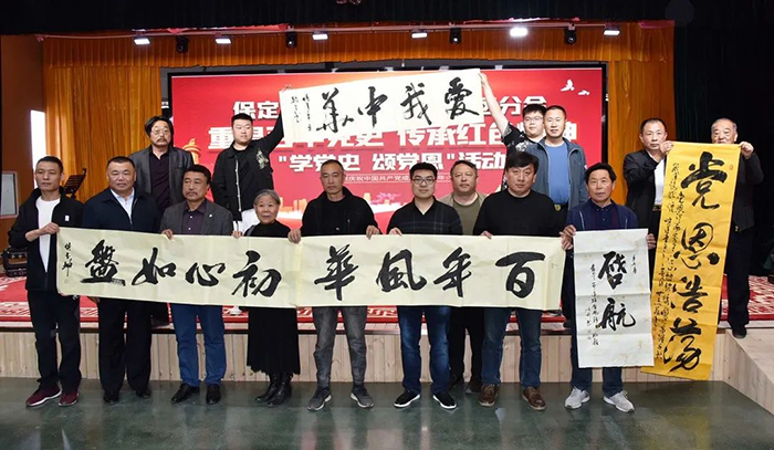 重溫百年黨史,傳承紅色精神!在建黨100周年之際,由保定馨冠食品有限公司主辦,民建保定市滿城支部、保定市京津冀協(xié)同發(fā)展促進(jìn)會(huì)、保定市廣播電視報(bào)社、保定市美術(shù)家協(xié)會(huì)滿城區(qū)分會(huì)、保定市書(shū)法家協(xié)會(huì)滿城區(qū)分會(huì)、保定市攝影家協(xié)會(huì)滿城區(qū)分會(huì)協(xié)辦的“講黨史 頌黨恩”?聯(lián)誼活動(dòng),于2021年5月2日,在保定市冠香居食品有限公司3樓“馨冠文化藝術(shù)館”隆重上演。