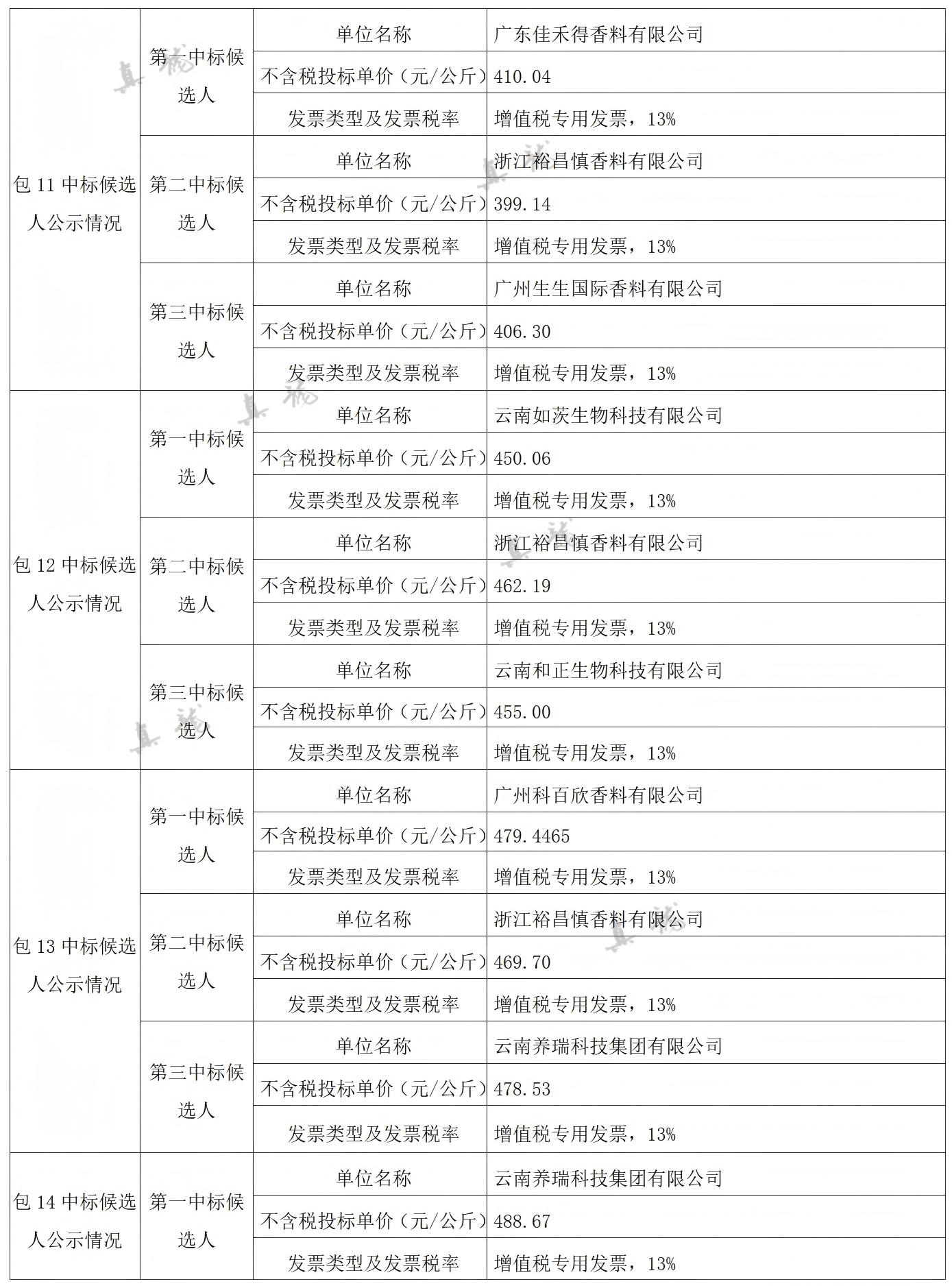 廣西中煙工業(yè)有限責任公司2026-2028年自主品牌香精香料采購之復合體采購第一批(項目編號:B202501BA2001767947560)中標候選人公示