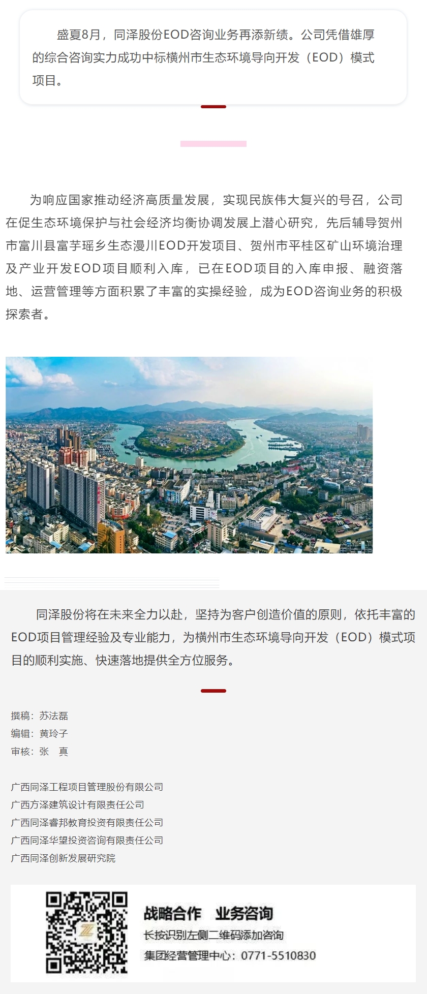中標(biāo)資訊 | 同澤股份成功中標(biāo)橫州市生態(tài)環(huán)境導(dǎo)向開發(fā)(EOD)模式項目